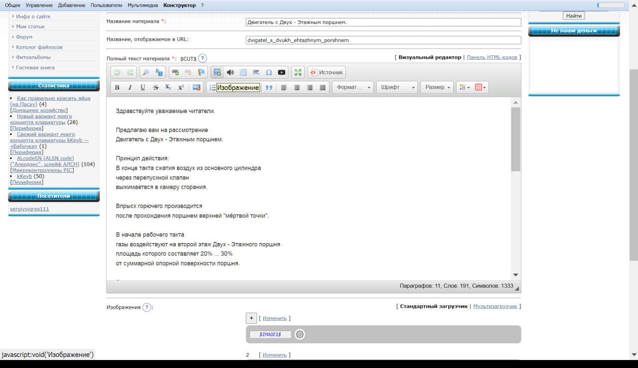 Если не получится отредактировать пост, то можешь прислать фото на мою почту Steve_KEY@mail.ru я вставлю. Очень интересное решение. Только, этот сайт уже не посещается, вся движуха в Телегу перешла…